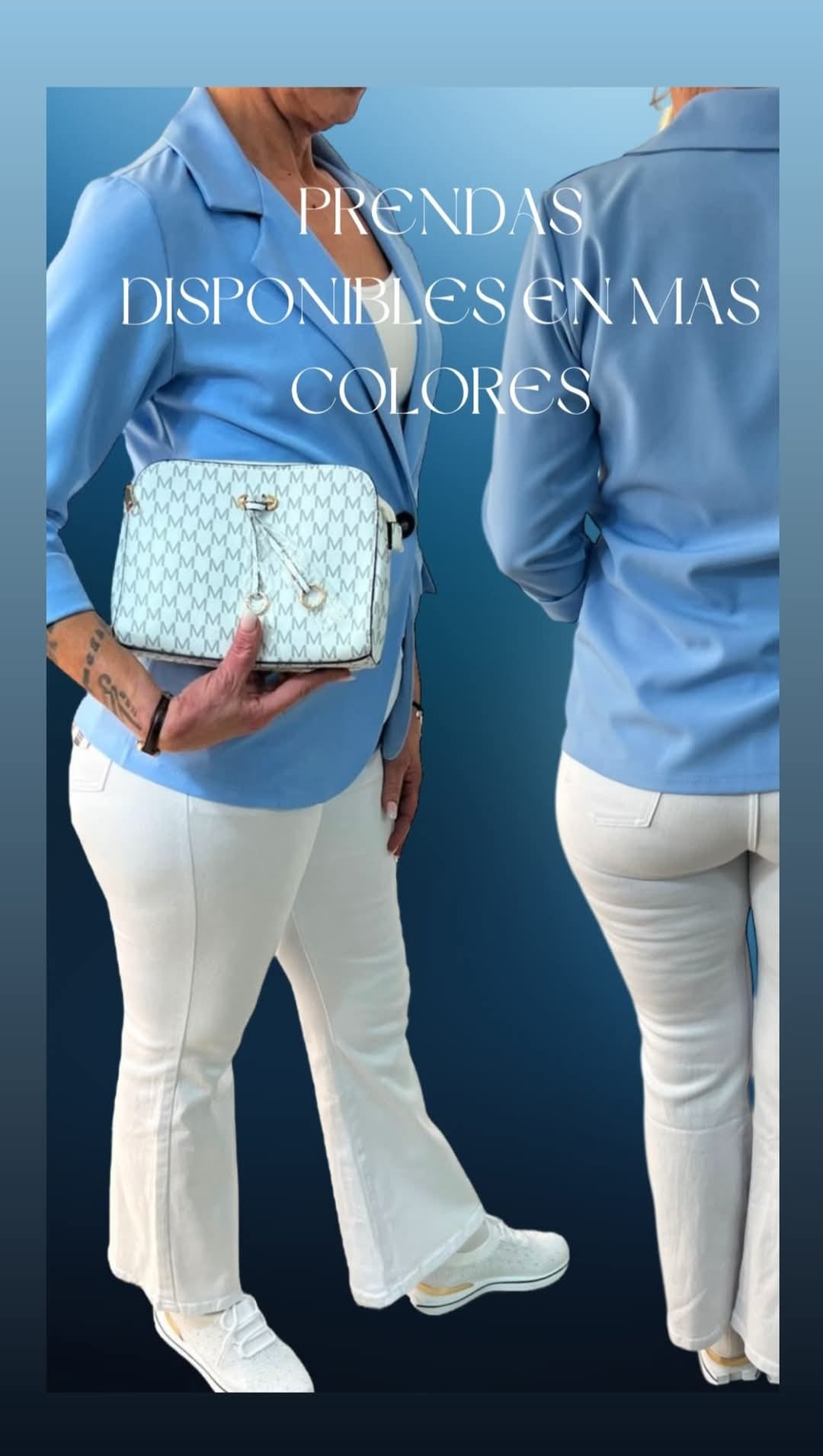 Podemos ver en el modelo 1 chaqueta americana 20,60, bolso 22 y tejano 26,50, productos disponibles en nuestra tienda.